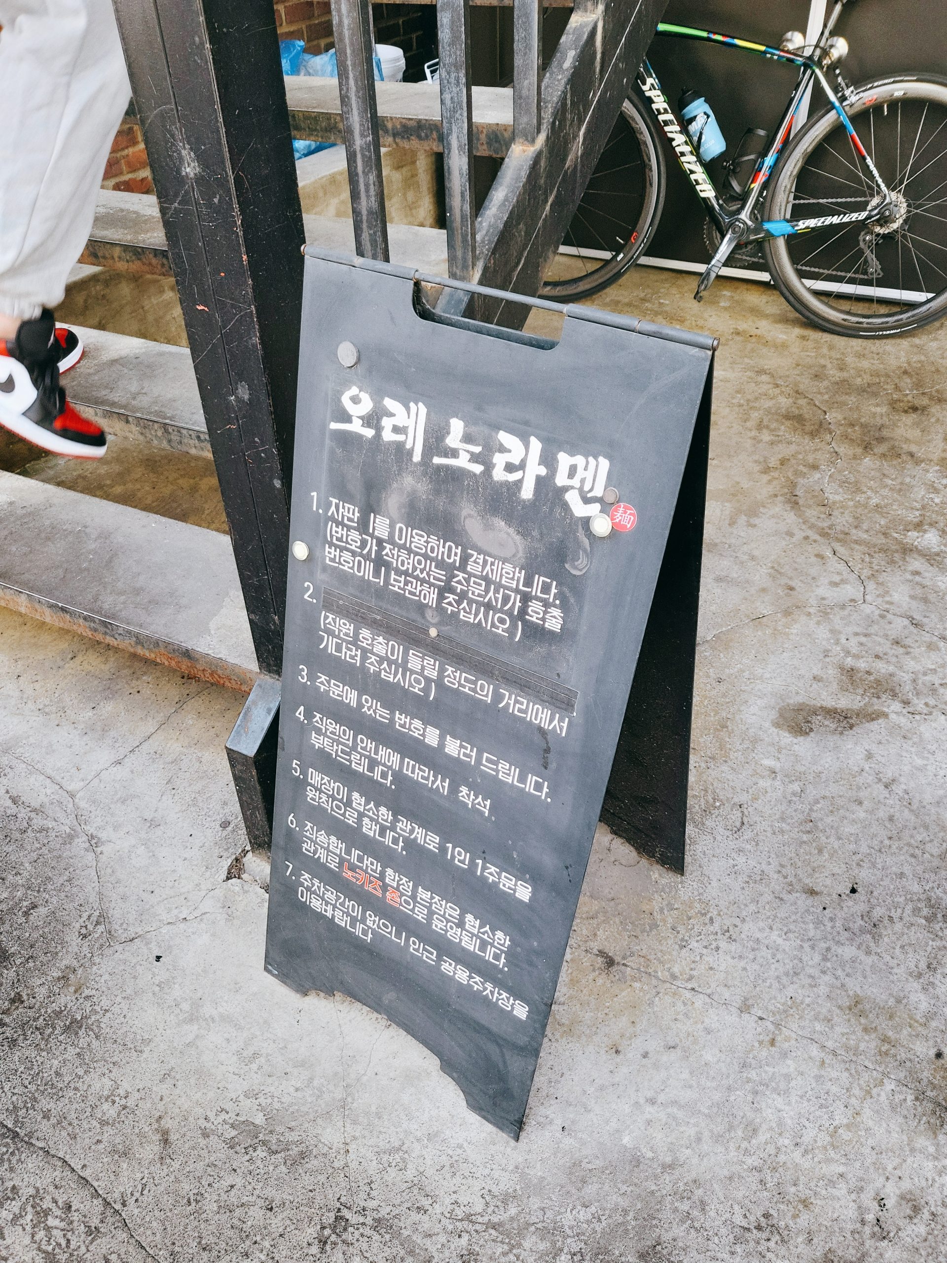 안내판에는 자판기를 이용한 주문과 대기자들을 위한 안내, 노키즈존과 주차에 대한 설명 등 가게에 대한 간단한 안내 사항들이 적혀있습니다.
